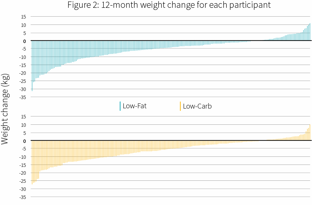 There was also some huge differences between people in the same diet. In both groups, some people lost 25 kg (over 50 pounds) and some gained 10 pounds. ON THE SAME DIET! Do what works for you.
