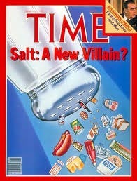 In 1982, salt was called ‘A New Villain’ on the cover of TIME magazine. The 1988 publication of the INTERSALT study seemed to seal the deal. This massive study involved 52 centers in 32 countries and laboriously measured salt intake and compared this to blood pressure. Across all populations, the higher the salt consumption, the higher the blood pressure. Seemed like a slam dunk, although the effect was quite small. A 59% reduction in sodium intake would be predicted to lower the blood pressure by only 2 mmHG. If your systolic blood pressure was 140, severely restricting your salt could lower that to 138. However, no data existed as to whether this would translate into less heart attacks and strokes. But based on this influential study, in 1994 the mandatory Nutrition Facts Label proclaimed that Americans should only eat 2,400 mg per day (about one teaspoon of salt). Yet the stubborn fact remains that virtually every healthy population in the world eats salt at levels far above that recommendation. The dramatic improvements in health and lifespan of the last 50 years have occurred during a period where almost everybody was considered to be eating too much salt.