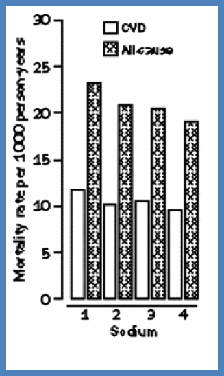 The evidence from the United States was not encouraging either. The National Health and Nutrition Examination Survey (NHANES) are large scale surveys of American dietary habits carried out periodically. The first survey found that those eating the least salt died at a rate 18% higher than those eating the most salt. This was a highly significant, and disturbing result.